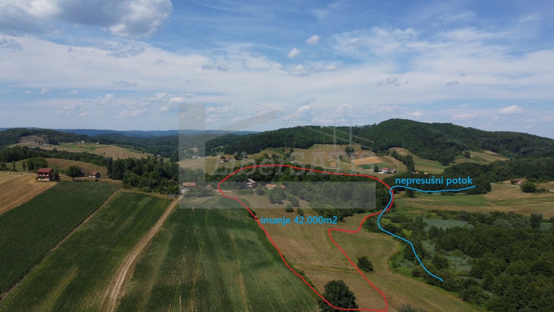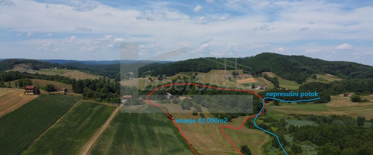 Kuća, gospodarske zgrade, dvorište, okućnica ukupne površine 43,500 m2.